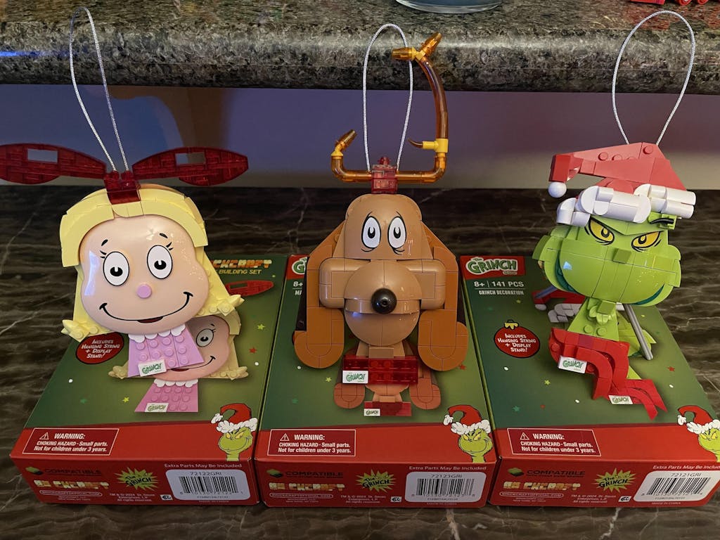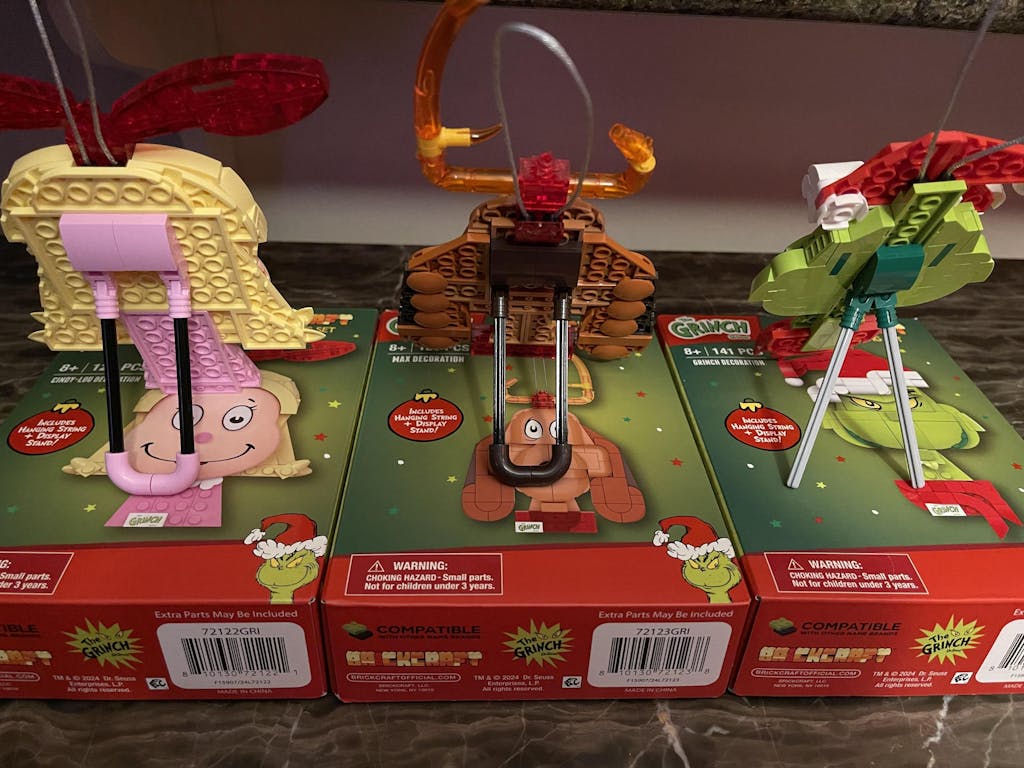 Add some playful mischief to your holiday décor with the Officially Licensed Brickcraft Grinch Decoration Building Kit. Hang it on your tree with the festive silver string, or use the included table stand to display it on your desk or mantel. This delightful set features the Grinch with his mischievous yellow eyes, sneaky smile, and festive Santa hat. Whether for yourself or as a gift, this set is sure to bring joy to Grinch fans and make for a memorable holiday surprise.