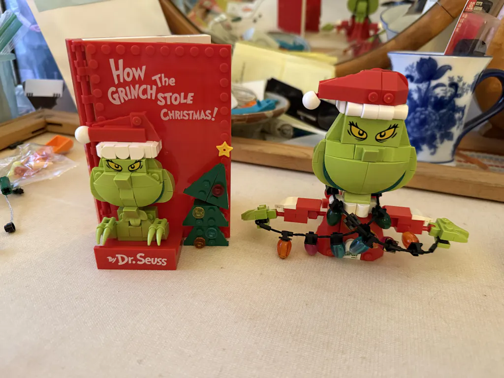 The Grinch gets brick-built in this holiday-ready book display, complete with a 3D figure on the cover and printed story quotes inside. Open the hinged build to reveal a blank page, then use the included sticker sheet to create your own festive Whoville scene. One of four collectible books in the Brickcraft x Dr. Seuss collection.