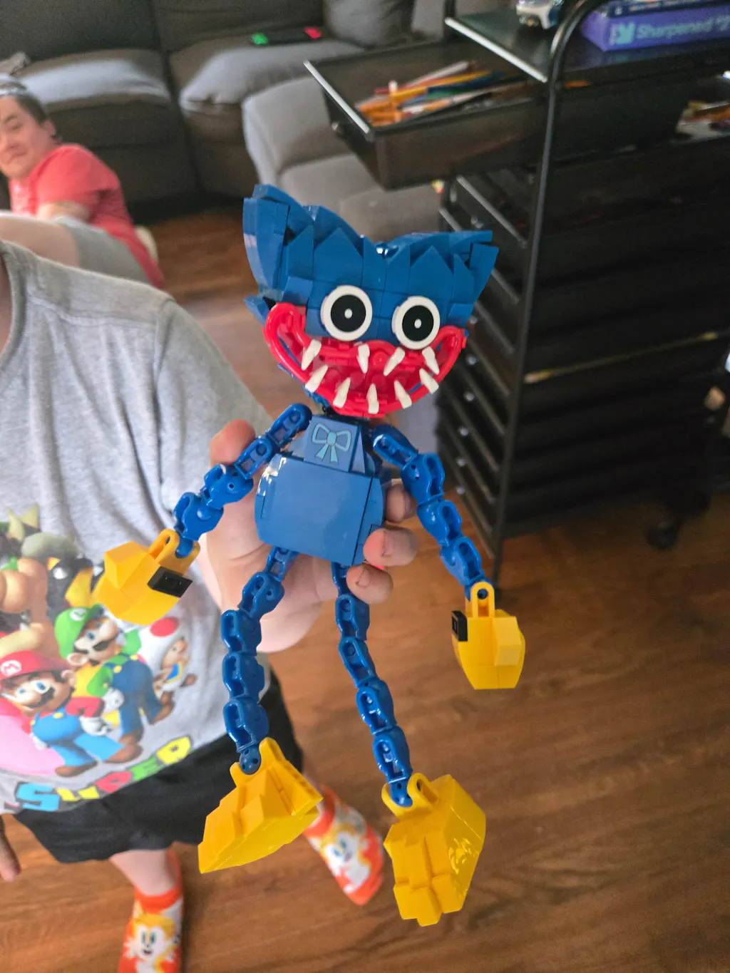 Step into a world of mystery with the Poppy Playtime Huggy Wuggy brick-building set! This tall, slender creature features a cartoonish wide smile, oversized yellow hands and feet, and bendable limbs for customizable poses. Turn his head to reveal a chilling, dagger-toothed grin and bug-eyed stare, transforming Huggy from playful to petrifying. Perfect for fans of the iconic video game, this set delivers a thrilling experience for those brave enough to face the fright.