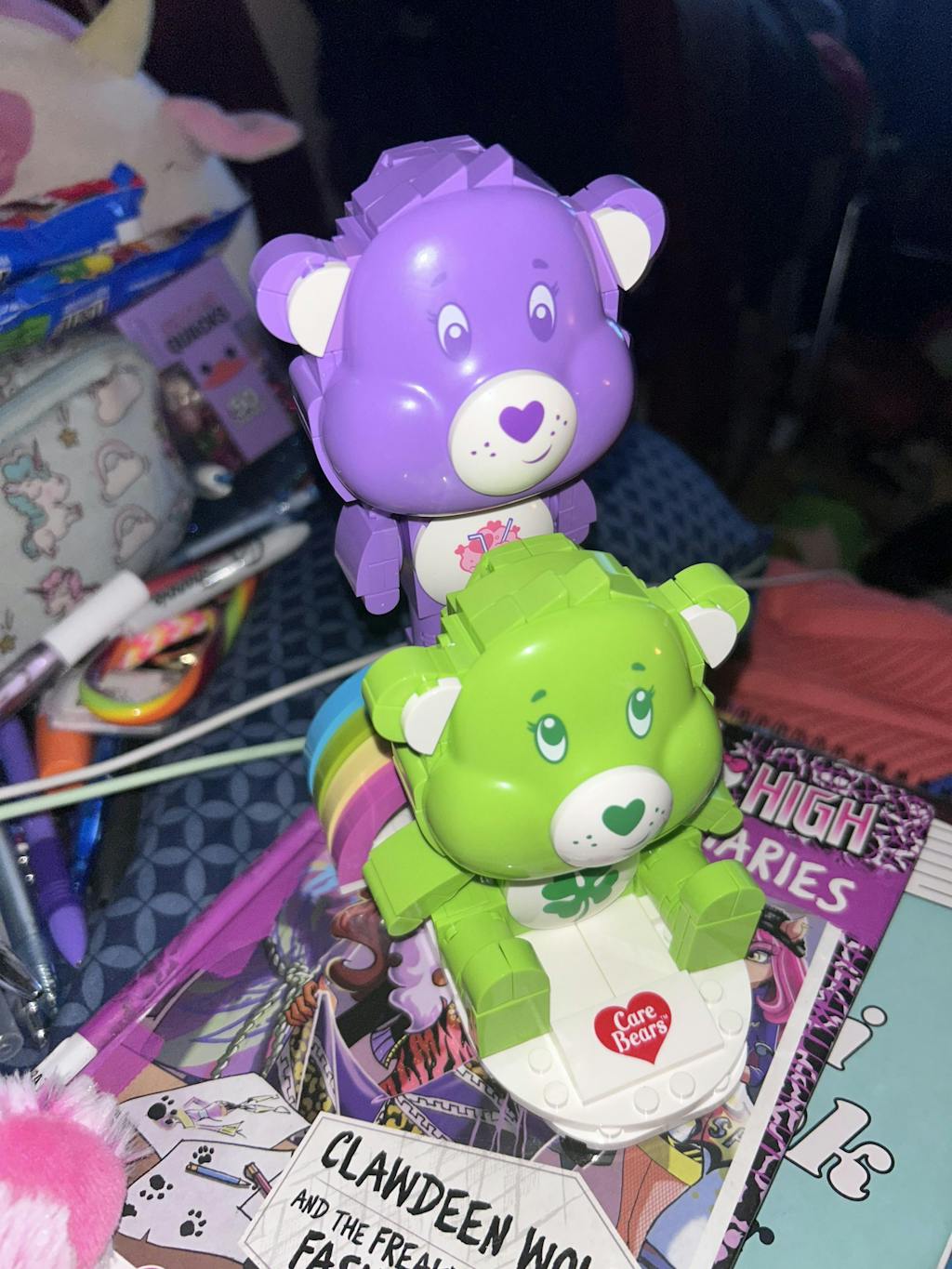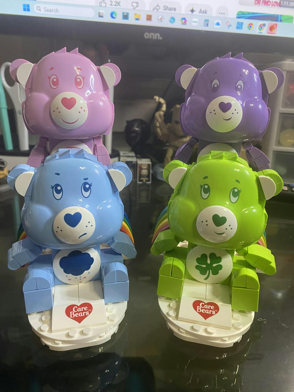 Good Luck Bear™ and Share Bear™ team up in a vibrant brick-built display that’s full of Care Bears charm. Stacked in a playful pose on a rainbow base, these two bring a burst of color and personality to any shelf. Printed belly badges, bright character colors, and authentic shaping capture their classic look, making this a cheerful build that’s as fun to make as it is to display.
