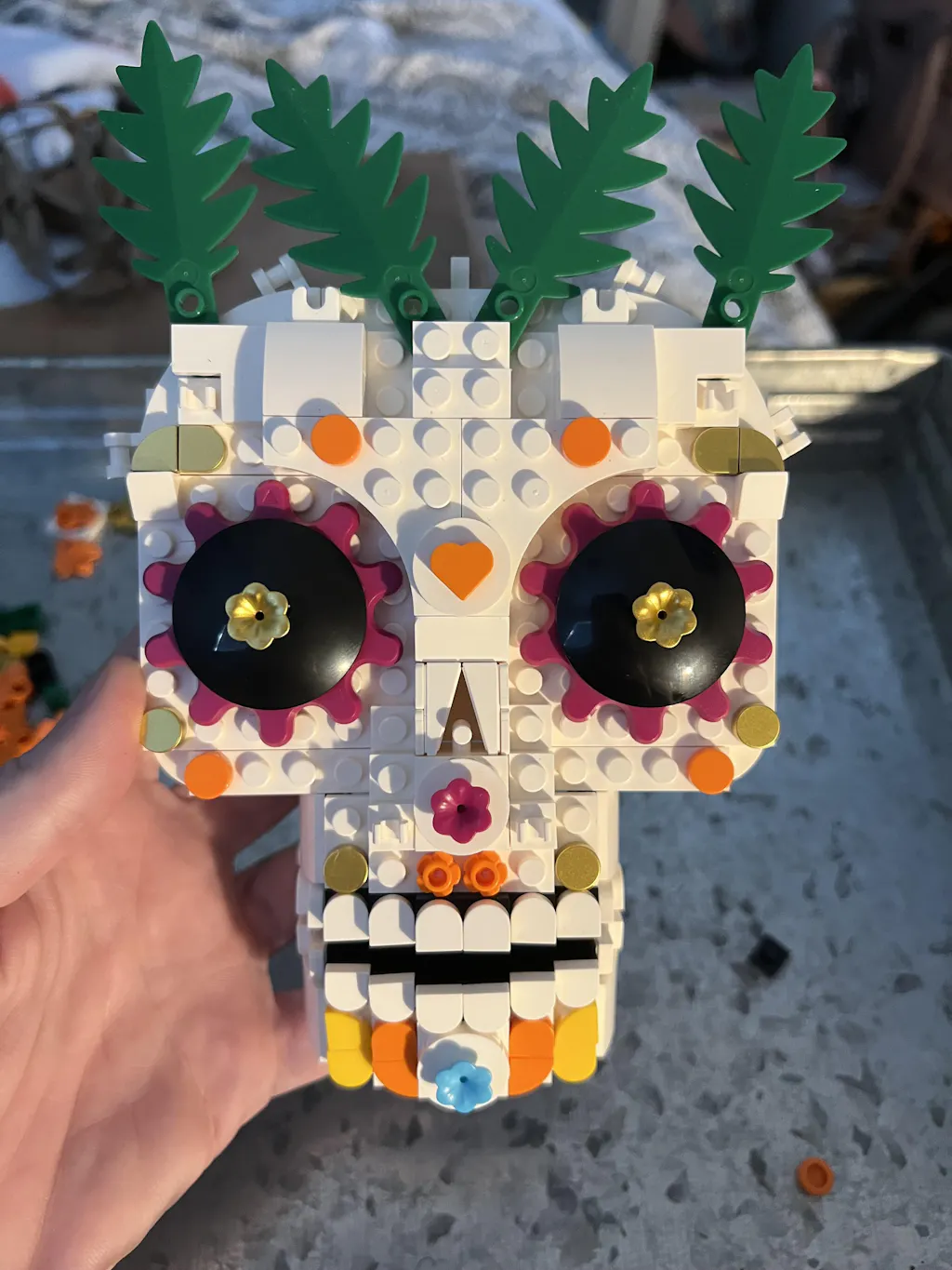 Honor tradition through creativity with the Brickcraft Sugar Skull Building Kit. Inspired by Día de los Muertos calaveras, this floral-adorned skull features sculpted marigolds, vibrant petals, and swirling accents. A display stand is included for upright presentation, perfect for shelves, desks, or altars. This colorful, meaningful build blends cultural artistry with bold brick design for a one-of-a-kind statement piece.